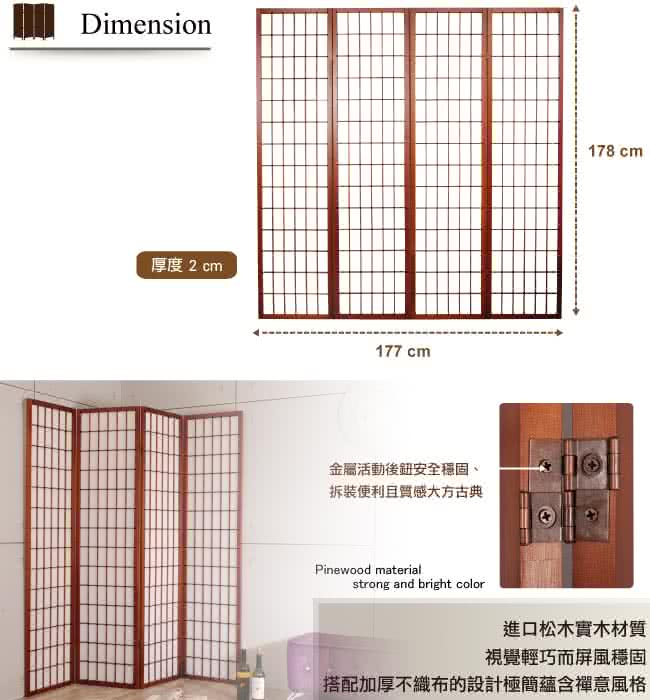 商品訊息描述: 森悅四片式屏風(胡桃)